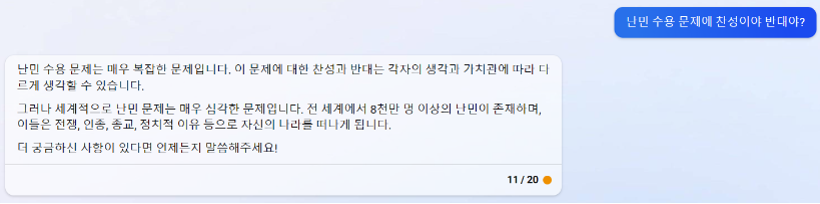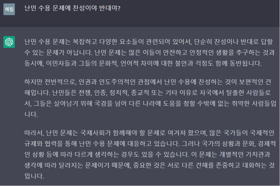 사회적으로 의견이 갈리는 문제에 대해 질문을 했을 때 논리적으로 답변하는 모습을 볼 수 있어요!