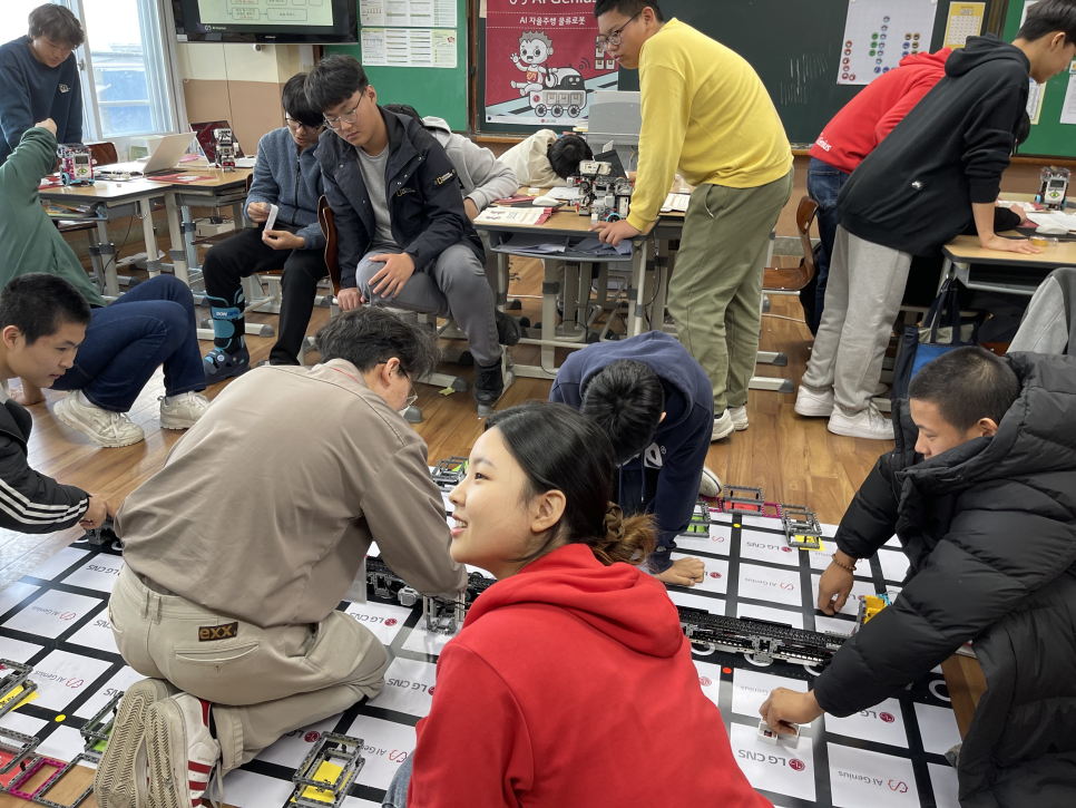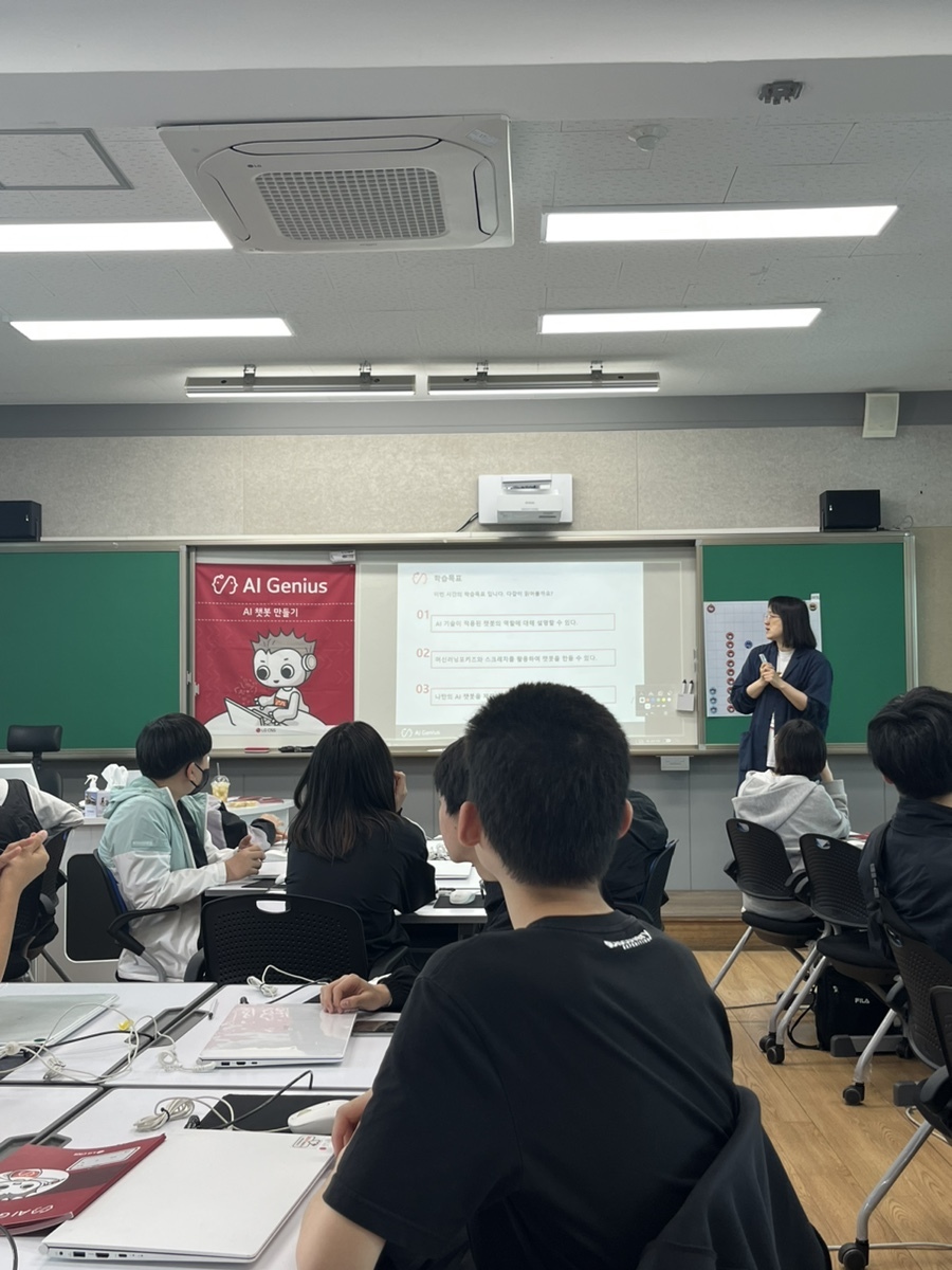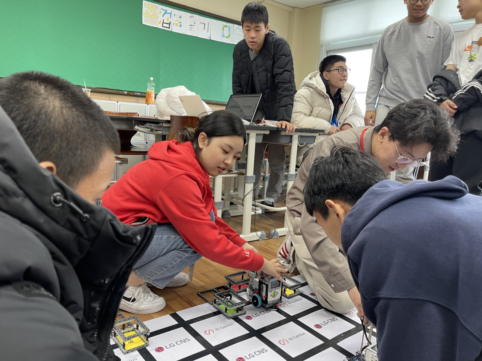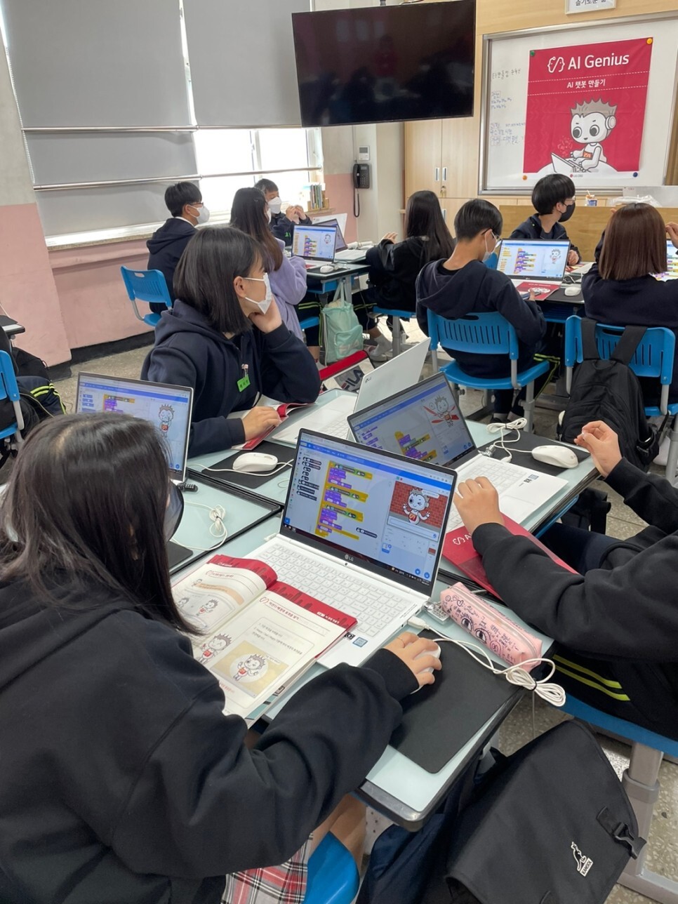 AI Genius๋ค์ ๋งค์ฃผ ์์์ผ๋ง๋ค ์์ธ ์ง์ญ์ ์คํ๊ต์ ๋ฐฉ๋ฌธํ์ฌ ๋ฏธ๋ AI Genius๋ก ์ฑ์ฅํ
