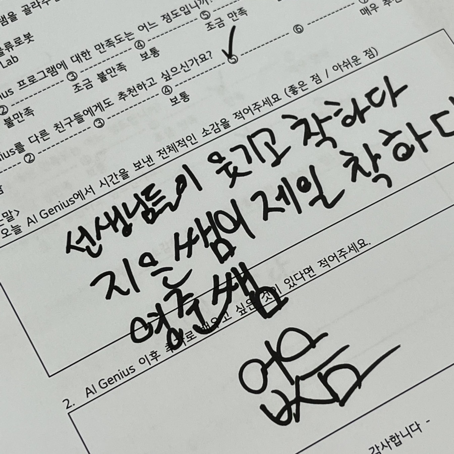 ์ด๋ฆฐ ์น๊ตฌ๋ค๊ณผ ์ํตํ๋ฉด์ AI๋ฅผ ์๋ ค์ฃผ๋ฉด ๋ฆฌํ๋ ์ฌ๋ ๋๋ฉด์ ๊ธฐ๋ถ์ด ์ข์์ง๋๋ผ๊ณ ์!