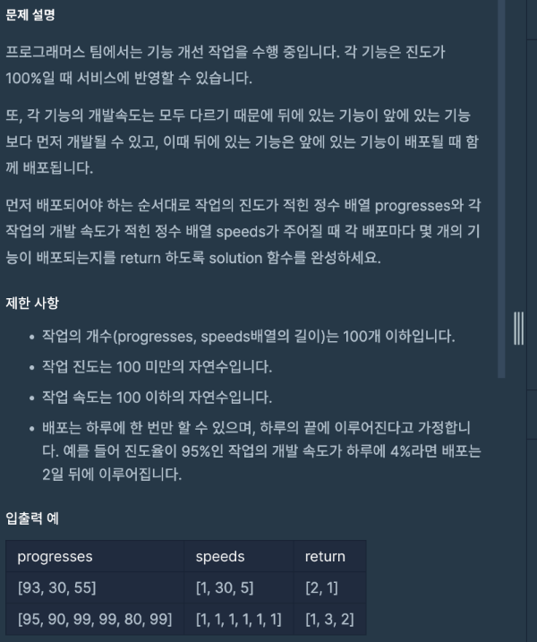 ์ฒซ๋ฒ์งธ ๋ฐ๋ณต๋ฌธ์์ ๋จผ์ ์ ค ์์์๋ progress๊ฐ 100์ด ์ด์์ด ๋ ๋๊น์ง time +=1 ํด์ฃผ๊ธฐ