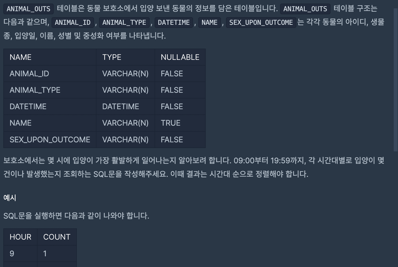 1. DATETIME์ "2014-06-28 13:40:00" ์ด๋ฐ ํ์์ผ๋ก ๋์ด ์์. -> HOUR ํจ์๋ฅผ ์ฌ์ฉํ๋ฉด ๋จ.