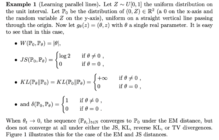 Wasserstein GAN์ ์๊ณ ๋ฆฌ์ฆ์ ๋ํด ์๊ฐํ๊ธฐ ์ ์, ์ฌ๊ธฐ์ ์ฌ์ฉํ ํ๋ฅ ๊ฑฐ๋ฆฌ ์ฒ๋์ ๋น์์ฑ์ ๋ํด ์ด์ผ๊ธฐ ํ๋ ๋ถ๋ถ์ด๋ค.