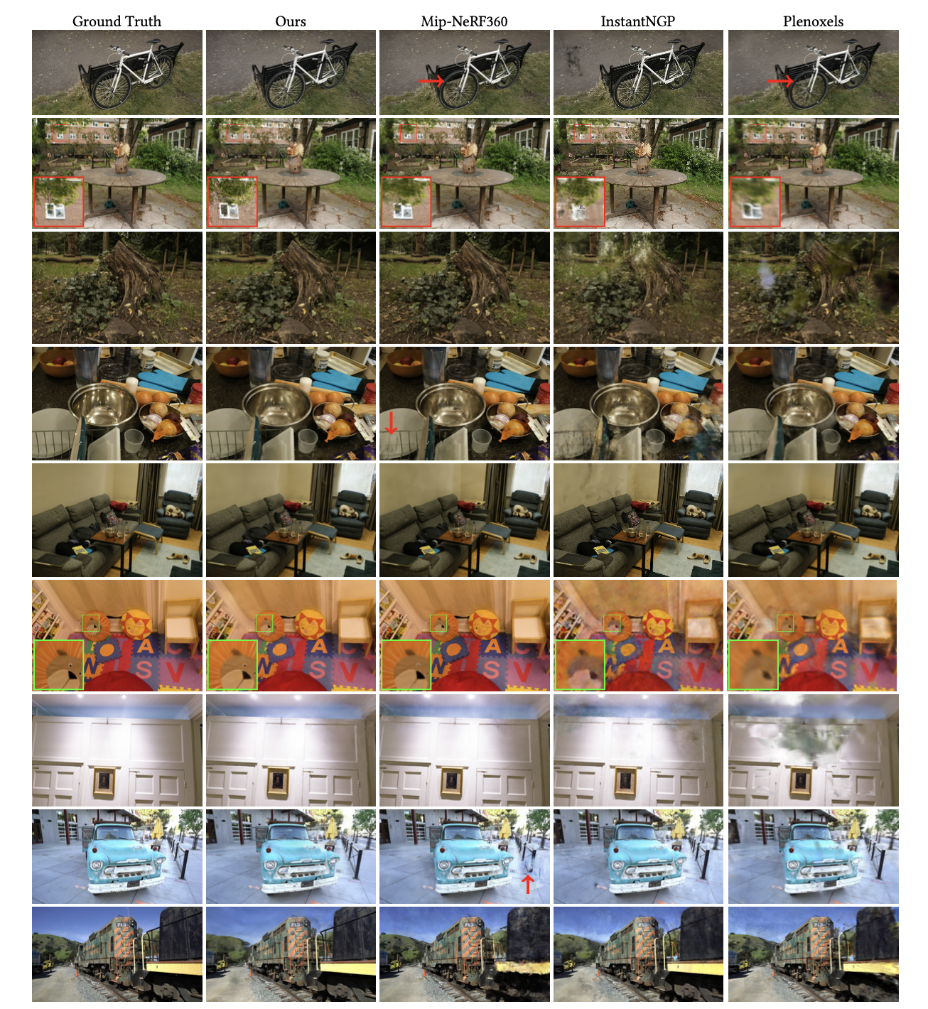 - 기존의 NeRF 기반 방법보다 더 좋은 성능 -> Rendering speed가 real-time으로 수행될 수 있을 만큼 빠름.